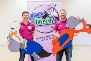 Markus und Stefan aus Obereglsee verleihen und verkaufen für dich tolle Störche und Geschenkideen.